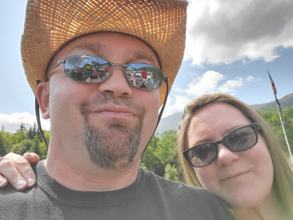 Debi, Mike with friends on Mount Washington enjoying the Cogs Railroad.